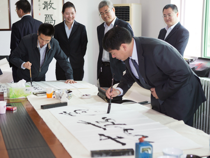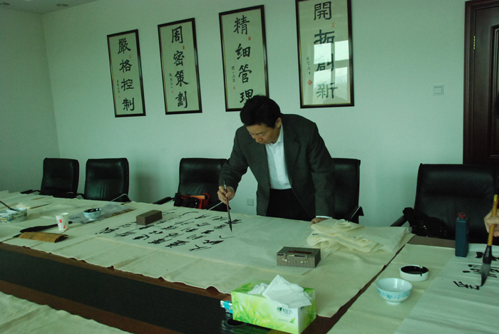 为弘扬传统文化,丰富员工业余生活,5月6日上午,乐投平台有限公司举办了首届书画艺术学习交流活动。本次活动邀请了中国书法家协会会员孟云飞博士、中国书法家协会理事张铜彦先生、中国书法家协会编辑出版委员会副主任王荣生教授、人民艺术家协会理事于瑛先生等国内知名书画大师,各位书画大师在活动现场进行了艺术创作表演,挥毫泼墨,交流技艺,为乐投平台有限公司留下了数十副墨宝,还对部分员工的书画作品进行了悉心指导。公司员工现场欣赏了书画大师的艺术创作,并聆听了有关书画艺术鉴赏知识的介绍,部分员工还在活动现场进行创作,听取书画大师的讲解示范和点评。