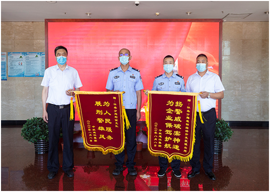 培训中心主任孔德明代表乐投平台向怀柔分局雁栖经济开发区派出所所长和怀柔分局刑侦支队支队长送上锦旗,代表公司感谢人民警察服务企业生产建设、守护一方平安付出的艰辛努力,感谢怀柔分局雁栖开发区派出所和怀柔分局刑侦支队急企业所急、想人民所想,在企业遇到困难时及时出警,有力保障了企业财产安全,维护了社会良好秩序,为企业发展创造了平安和谐的营商环境。
