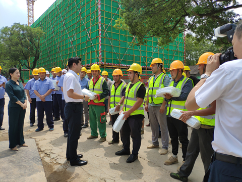 8月21日上午十一点,接近中午烈日炎炎,湘江集团党委书记、董事长张利刚一行来到乐投平台承建的长沙科技创意园项目,现场看望慰问高温天气下依然坚守战斗在岗位上的广大建设者,为大家送来了冰箱、电风扇、凉茶、藿香正气水、夏桑菊、西瓜等防暑降温用品。
