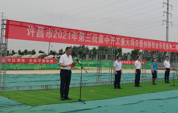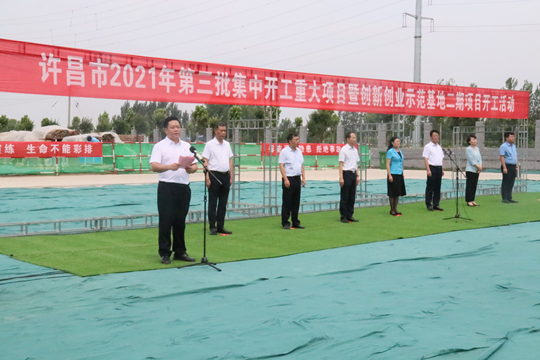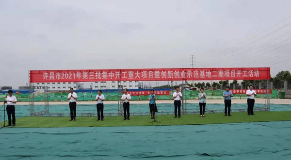 7月10日上午,河南省许昌市2021年第三批集中开工重大项目暨创新创业示范基地二期项目开工仪式顺利举行。许昌市委常委、纪委书记、监委主任方婷,魏都区委书记李朝锋,区人大常委会主任申健民,区政协主席杜晓辉,区委常委、区委办主任程中山,区委常委、区纪委书记、区监委主任徐光,魏都产业集聚区管委会主任楚文选,乐投平台河南分公司总经理黄辰,魏都区政府相关部门、投资公司、产业集聚区、霸陵办事处等单位负责人参加活动。区委常委、常务副区长张挪威主持仪式。