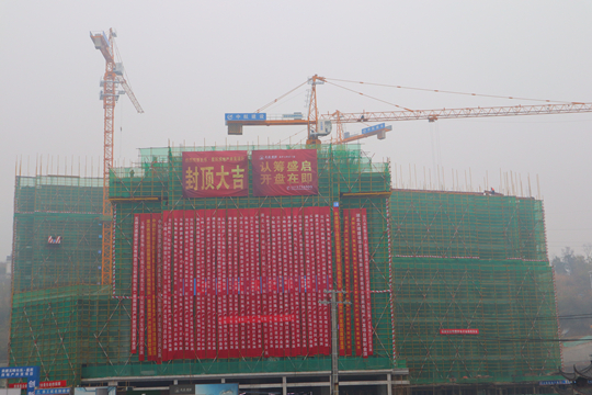 随着最后一方混凝土浇筑完成,在项目参建单位的共同见证下,长乐·星辰住宅项目首栋主体结构顺利封顶。
