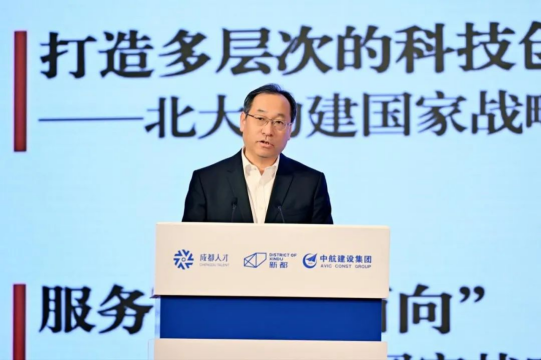 中国科学院院士张锦围绕“高水平研究型大学如何构建国家战略科技力量”主题,介绍了在促进科技成果转化、推动产学研深度融合的“北大经验”,并表示将致力于探索建立健全科技成果转化制度体系,开拓“市场出题、共同答题”的校地企合作新模式。